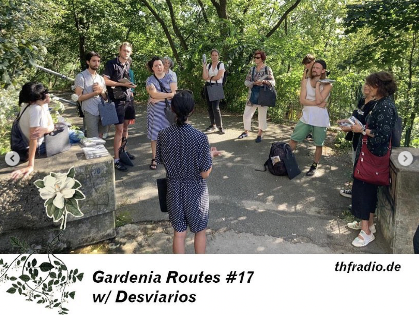 I departed from my last project “DESVIARIOS: Walks in Humboldthain Park” as case study. A project realized with artists Pilar Millán (Spain), Ela Spalding (Panama), Manuela García Aldana (Colombia), Julia Mensch (Argentina), Marco Montiel Soto (Venezuela/Colombia), Marcela Moraga (Chile)It was truly enjoyable to trace back the genealogy of walking as an aesthetic practice…. nomadic space, errand space, dada views, urban readymade, surrealist wandering, the city as amniotic fluid, the banal city, the unconscious city, dérive, the ludic city, the bourgeoise archipelago or the nomadic labyrinth. And in all this, our series of walks in Humboldthain park: DESVIARIOS, which is an invented word (to detour, to divert, to stray; one self, because it is a reflective action). And through invention is that we wanted to welcome the public to learn possible histories of Humboldthain through the work of 6 artists based in Berlin. Together we compose an alternative affective cartography of first person travel chronicles in relation / in reaction to modern & contemporary scientific expeditions from Europe to Latin America, filling some gaps in dominant narratives, that unveil, along the way, the voices, knowledge and cosmogonies buried by the presence of European science on colonial soil, with the awareness that walking is a form of urban intervention, setting in motion the whole body – individual, social – that simultaneously reads, writes and manifests the inner boundaries of a city.